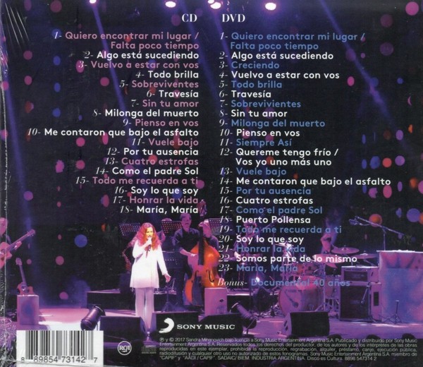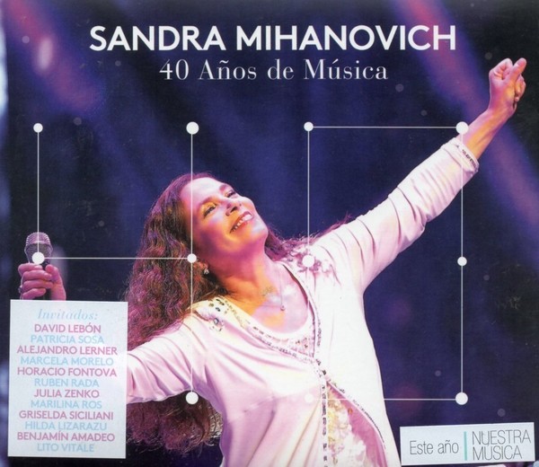 Artista(s) / Grupo: Sandra Mihanovich | Cantidad de Discos: 1 DVD + 1 CD | Lanzamiento: 2017 | Género(s): Latin | Título: 40 Años De Música | Artista(s) / Grupo: Sandra Mihanovich | Cantidad de Discos: 1 DVD + 1 CD | Lanzamiento: 2017 | Género(s): Latin | Título: 40 Años De Música