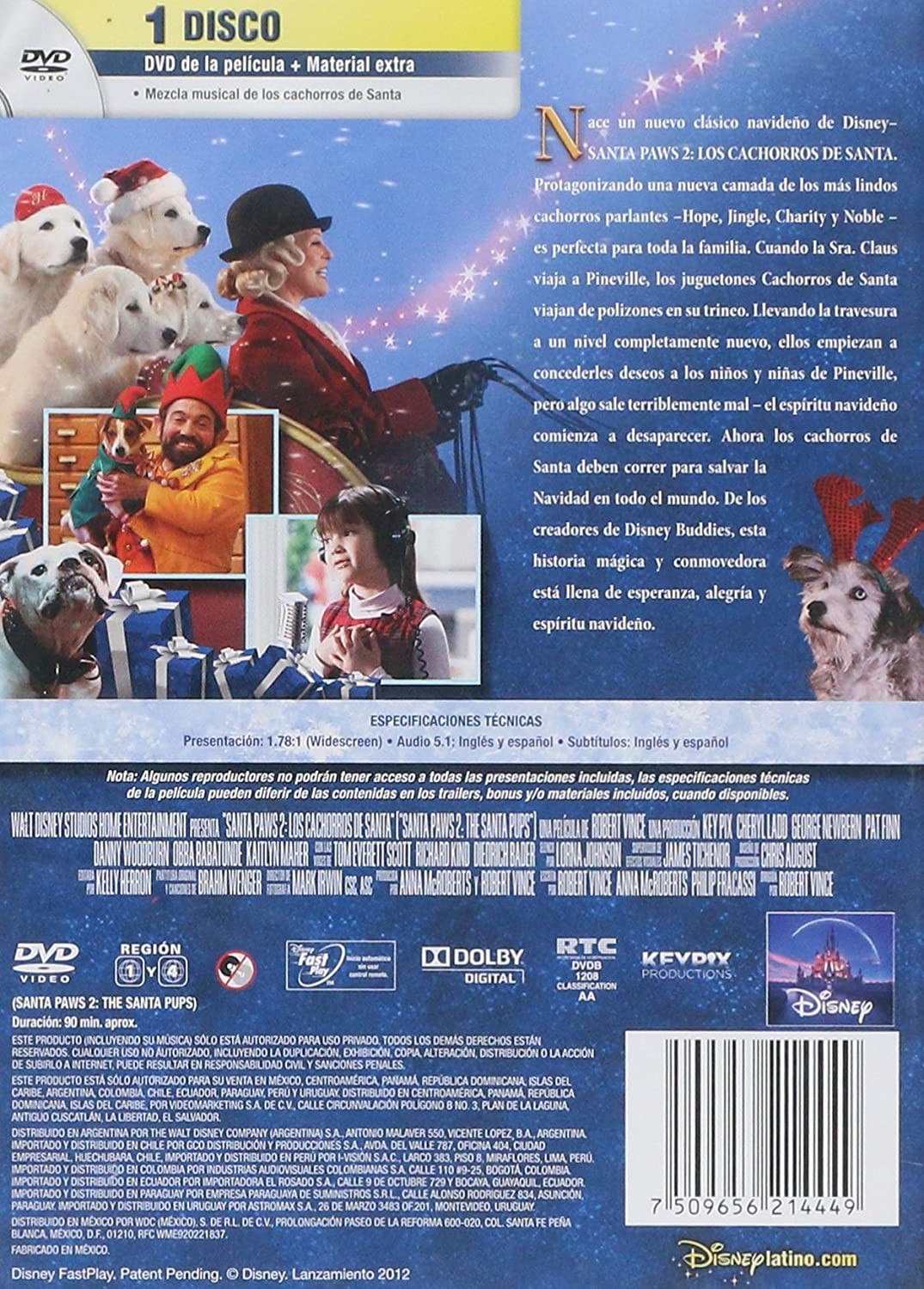 Cantidad de Discos: 1 | Lanzamiento: 2012 | Género(s): Infantil. Comedia | Audio: Español (Dolby Digital 2.0), Inglés (Dolby Digital 2.0) | SubtÃtulos: Español, Inglés | TÃtulo: Santa Paws 2: The Santa Pups | Director(es): Robert Vince | Reparto: Cheryl Ladd, Danny Woodburn, Kaitlyn Maher, Pat Finn, Joey Bothwell, Ali Hillis, Obba Babatundé, Paul Rae, Jay Brazeau, Bill Chott, Michael Teigen | Norma / Región: NTSC (Región 1, 4) | Cantidad de Discos: 1 | Lanzamiento: 2012 | Género(s): Infantil. Comedia | Audio: Español (Dolby Digital 2.0), Inglés (Dolby Digital 2.0) | SubtÃtulos: Español, Inglés | TÃtulo: Santa Paws 2: The Santa Pups | Director(es): Robert Vince | Reparto: Cheryl Ladd, Danny Woodburn, Kaitlyn Maher, Pat Finn, Joey Bothwell, Ali Hillis, Obba Babatundé, Paul Rae, Jay Brazeau, Bill Chott, Michael Teigen | Norma / Región: NTSC (Región 1, 4)