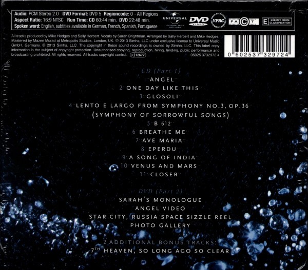 Artista(s) / Grupo: Sarah Brightman | Cantidad de Discos: 1 DVD + 1 CD | Lanzamiento: 2013 | Género(s): Pop, Classical | Título: Dreamchaser | Artista(s) / Grupo: Sarah Brightman | Cantidad de Discos: 1 DVD + 1 CD | Lanzamiento: 2013 | Género(s): Pop, Classical | Título: Dreamchaser