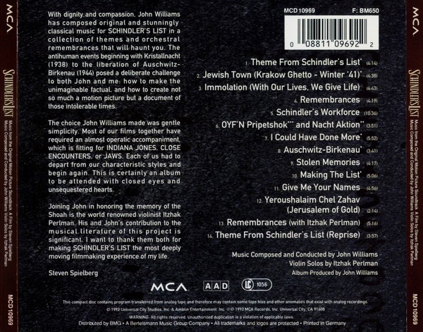 JOHN WILLIAMS – SCHINDLERS LIST – SOUNDTRACK
