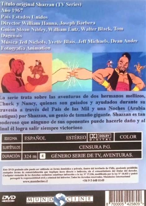 Cantidad de Discos: 4 | Lanzamiento: 2015 | Género(s): Serie de TV. Animación. Aventuras. Infantil | Audio: Español | SubtÃtulos: Español | TÃtulo: Shazzan (1967) | Director(es): William Hanna, Joseph Barbera | Reparto: Animación | Norma / Región: Multizona (Disco Quemado) | Cantidad de Discos: 4 | Lanzamiento: 2015 | Género(s): Serie de TV. Animación. Aventuras. Infantil | Audio: Español | SubtÃtulos: Español | TÃtulo: Shazzan (1967) | Director(es): William Hanna, Joseph Barbera | Reparto: Animación | Norma / Región: Multizona (Disco Quemado)