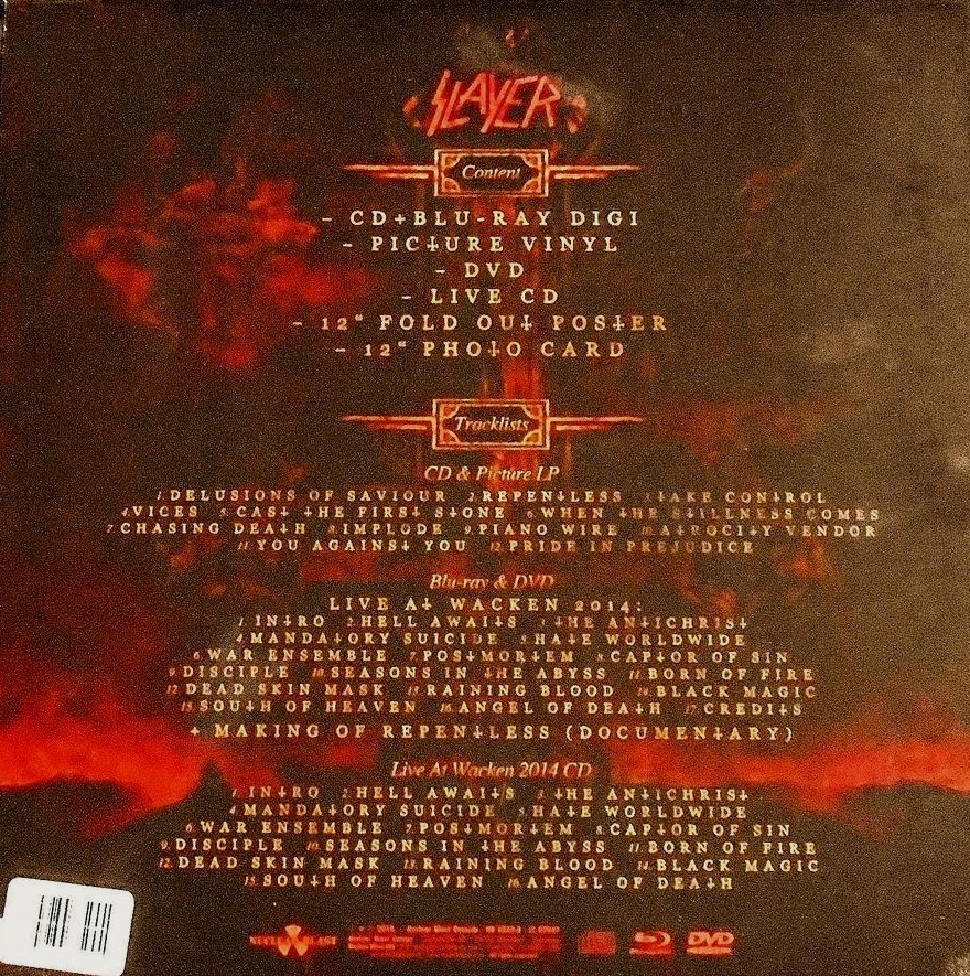 Artista(s) / Grupo: Slayer | Cantidad de Discos: 1 LP 12″ + 1 BluRay + 1 DVD + 1CD + POSTER | Lanzamiento: 2015 | Género(s): Rock | Estilo(s): Heavy Metal | TÃtulo: Repentless | Artista(s) / Grupo: Slayer | Cantidad de Discos: 1 LP 12″ + 1 BluRay + 1 DVD + 1CD + POSTER | Lanzamiento: 2015 | Género(s): Rock | Estilo(s): Heavy Metal | TÃtulo: Repentless | Artista(s) / Grupo: Slayer | Cantidad de Discos: 1 LP 12″ + 1 BluRay + 1 DVD + 1CD + POSTER | Lanzamiento: 2015 | Género(s): Rock | Estilo(s): Heavy Metal | TÃtulo: Repentless