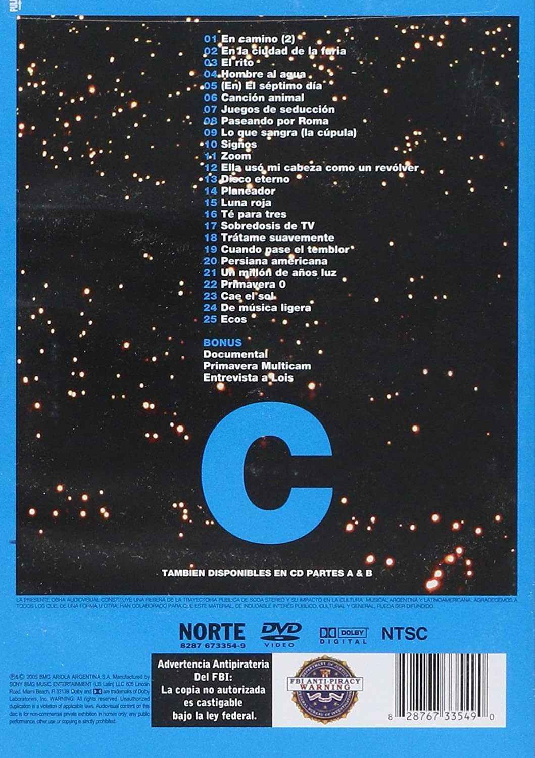 Artista(s) / Grupo: Soda Stereo | Cantidad de Discos: 1 | Lanzamiento: 2005 | Género(s): Rock, Pop | Estilo(s): Rock, Pop | Audio: Español | Subtítulos: Español | Título: El Ultimo Concierto | Director(es): Alfredo Lois | Reparto: Documental, (Intervenciones de Gustavo Cerati, Zeta Bosio, Charly Alberti) | Norma / Región: NTSC (Región A) | Artista(s) / Grupo: Soda Stereo | Cantidad de Discos: 1 | Lanzamiento: 2005 | Género(s): Rock, Pop | Estilo(s): Rock, Pop | Audio: Español | Subtítulos: Español | Título: El Ultimo Concierto | Director(es): Alfredo Lois | Reparto: Documental, (Intervenciones de Gustavo Cerati, Zeta Bosio, Charly Alberti) | Norma / Región: NTSC (Región A)