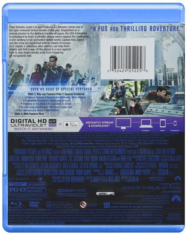Reparto: Chris Pine, Zachary Quinto, Karl Urban, Simon Pegg, Zoe Saldana, Anton Yelchin, John Cho, Idris Elba, Sofia Boutella, Joseph Gatt, Deep Roy, Lydia Wilson, Joe Taslim, Adam DiMarco, Ashley Edner, Christian Sloan, Jodi Haynes, Melissa Roxburgh, Anita Brown, Shohreh Aghdashloo, Kim Kold