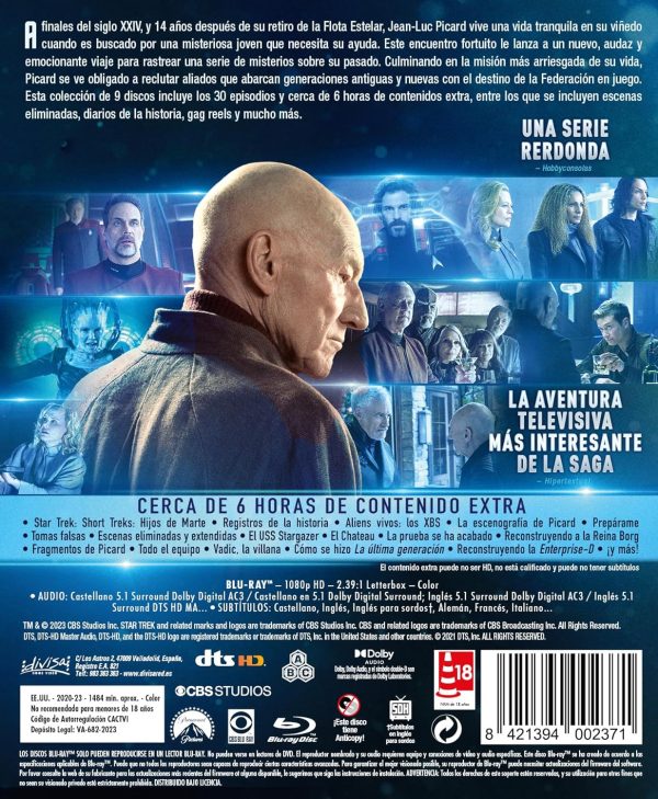 Serie de TV (2020-2023). 3 temporadas. 30 episodios. ambientada 18 años después de la última aparición de Jean-Luc Picard en «Star Trek: Nemesis», y encuentra al personaje profundamente afectado por la destrucción de Romulus como se muestra en la pelÃcula «Star Trek» (2009).