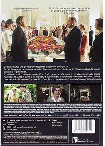 Cantidad de Discos: 1 | Lanzamiento: 2016 | Género(s): Drama | Audio: Español, Alemán, Inglés, Portugués, Francés | Subtítulos: Español | Doblado: Español | Título: Stefan Zweig. Adiós a Europa | Director(es): Maria Schrader | Reparto: Tómas Lemarquis, Barbara Sukowa, Nicolau Breyner, Charly Hübner, Lenn Kudrjawizki y Ivan Shvedoff | Norma / Región: PAL (Región 2) | Cantidad de Discos: 1 | Lanzamiento: 2016 | Género(s): Drama | Audio: Español, Alemán, Inglés, Portugués, Francés | Subtítulos: Español | Doblado: Español | Título: Stefan Zweig. Adiós a Europa | Director(es): Maria Schrader | Reparto: Tómas Lemarquis, Barbara Sukowa, Nicolau Breyner, Charly Hübner, Lenn Kudrjawizki y Ivan Shvedoff | Norma / Región: PAL (Región 2)