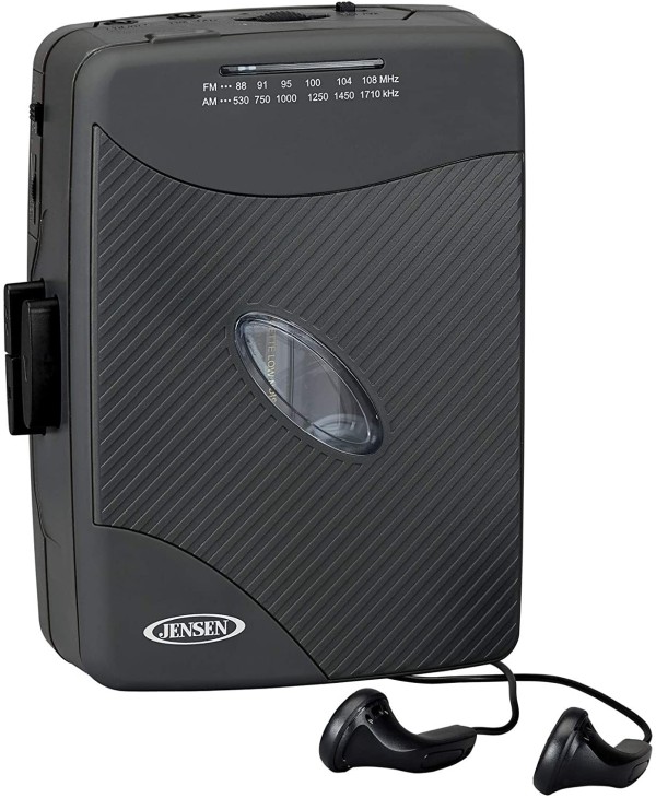 El reproductor de casete estéreo JENSEN® SCR-75 con radio AM/FM es el dispositivo perfecto para escuchar esos casetes que tienes en tu colección. Ya sea que estés escuchando libros en cinta o simplemente hayas revisado una colección de tus viejas cintas mixtas, este reproductor de casete estéreo de mano es perfecto para ti. Con un peso de solo unas pocas onzas, el SCR-75 es ligero, portátil y ofrece un diseño elegante con detalles de goma. Viene con varias funciones, como jugar, avance rápido, parada y parada automática. Escucha tus estaciones de radio favoritas, música estéreo o cintas de casete con los auriculares estéreo incluidos. La unidad también cuenta con un conector de salida de lÃnea, por lo que puedes conectar el reproductor al sistema estéreo doméstico o un conjunto de altavoces portátiles. La unidad funciona con 2 pilas «AA» (no incluidas).