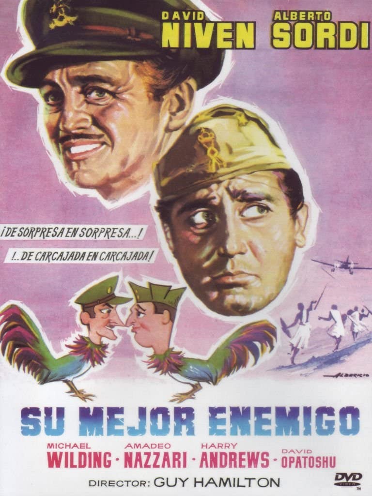 Cantidad de Discos: 1 | Lanzamiento: 1961 | Género(s): Aventuras. Comedia. Bélico | Audio: Español | SubtÃtulos: Inglés | TÃtulo: Su mejor enemigo | Director(es): Guy Hamilton | Reparto: David Niven, Alberto Sordi, Michael Wilding, Harry Andrews, Noel Harrison, Ronald Fraser, Bernard Cribbins, Duncan Macrae, Robert Desmond, Kenneth Fortescue, Michael Trubshawe, Amedeo Nazzari | Norma / Región: PAL (Región 2)