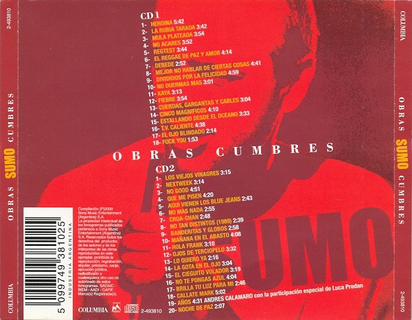 Artista(s) / Grupo: Sumo | Cantidad de Discos: 2 | Lanzamiento: 2000 | Estilo(s): Alternative Rock | TÃtulo: Obras Cumbres | Artista(s) / Grupo: Sumo | Cantidad de Discos: 2 | Lanzamiento: 2000 | Estilo(s): Alternative Rock | TÃtulo: Obras Cumbres