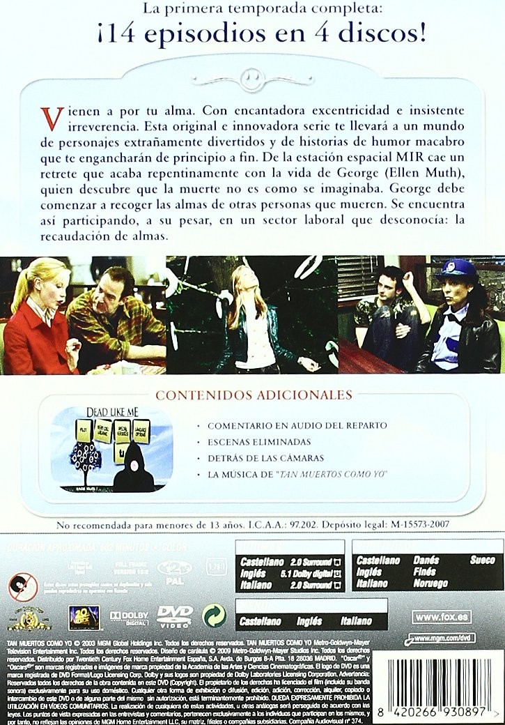 Cantidad de Discos: 1 | Lanzamiento: 2003 | Género(s): Serie de TV, Fantástico, Comedia | Audio: Inglés, Español, Francés | Subtítulos: Español, Inglés, Francés | Título: Tan Muertos Como Yo: Primera Temporada Completa | Director(es): Bryan Fuller (Creador), David Grossman, James Whitmore Jr., Peter Lauer, Robert Duncan McNeill, Kevin Dowling, Sarah Pia Anderson, Steve Beers | Reparto: Ellen Muth, Callum Blue, Mandy Patinkin, Cynthia Stevenson, Jasmine Guy, Laura Harris, Greg Kean, Britt McKillip, Christine Willes, Crystal Dahl, Rebecca Gayheart | Norma / Región: PAL (Región 2) | Cantidad de Discos: 1 | Lanzamiento: 2003 | Género(s): Serie de TV, Fantástico, Comedia | Audio: Inglés, Español, Francés | Subtítulos: Español, Inglés, Francés | Título: Tan Muertos Como Yo: Primera Temporada Completa | Director(es): Bryan Fuller (Creador), David Grossman, James Whitmore Jr., Peter Lauer, Robert Duncan McNeill, Kevin Dowling, Sarah Pia Anderson, Steve Beers | Reparto: Ellen Muth, Callum Blue, M