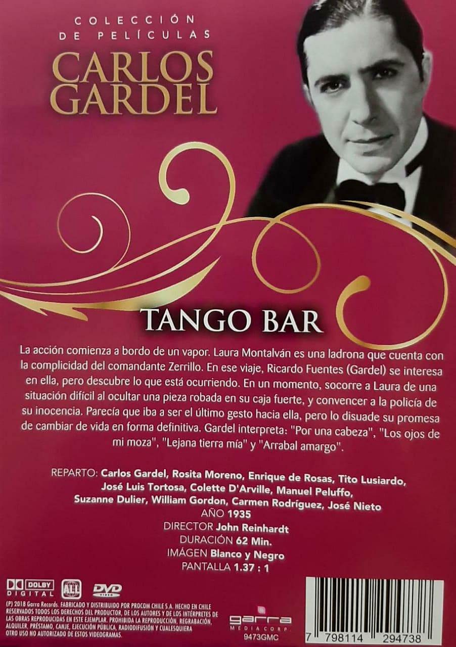 Cantidad de Discos: 1 | Lanzamiento: 2010 | Género(s): Rock | Audio: Español | TÃtulo: Tango Bar (1935) | Director(es): John Reinhardt | Reparto: Carlos Gardel, Rosita Moreno, Enrique de Rosas, Tito Lusiardo, José Luis Tortosa, Colette D’Arville, Manuel Peluffo, Suzanne Dulier, William Gordon, Carmen RodrÃguez, José Nieto | Norma / Región: Multizona | Cantidad de Discos: 1 | Lanzamiento: 2010 | Género(s): Rock | Audio: Español | TÃtulo: Tango Bar (1935) | Director(es): John Reinhardt | Reparto: Carlos Gardel, Rosita Moreno, Enrique de Rosas, Tito Lusiardo, José Luis Tortosa, Colette D’Arville, Manuel Peluffo, Suzanne Dulier, William Gordon, Carmen RodrÃguez, José Nieto | Norma / Región: Multizona