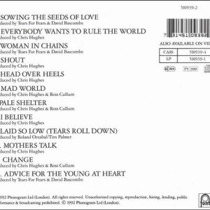 TEARS FOR FEARS – TEARS ROLL DOWN – GREATEST HITS 82-92