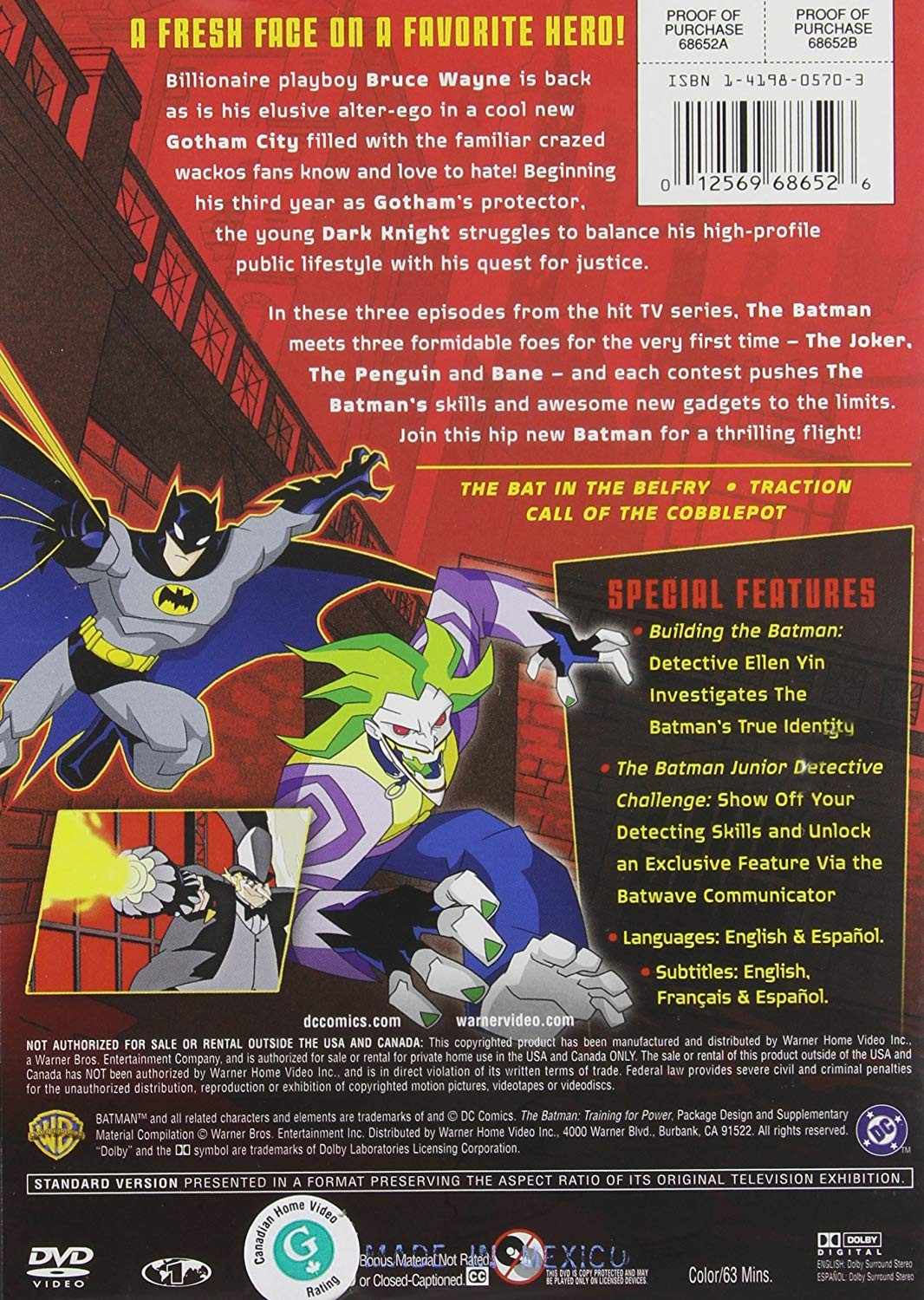 Cantidad de Discos: 1 | Lanzamiento: 2007 | Género(s): Animación | Audio: Inglés, Español | SubtÃtulos: Inglés, Francés, Español | TÃtulo: The Batman – Traning For Power – Season 1 – Vol 1 | Reparto: Rino Romano, Kevin Michael Richardson, Alistair Duncan, Steve Harris, Tom Kenny | Norma / Región: NTSC 1 | Cantidad de Discos: 1 | Lanzamiento: 2007 | Género(s): Animación | Audio: Inglés, Español | SubtÃtulos: Inglés, Francés, Español | TÃtulo: The Batman – Traning For Power – Season 1 – Vol 1 | Reparto: Rino Romano, Kevin Michael Richardson, Alistair Duncan, Steve Harris, Tom Kenny | Norma / Región: NTSC 1