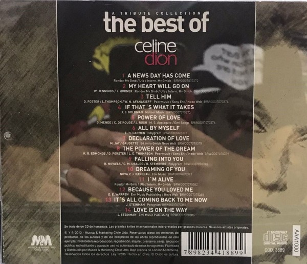 Cantidad de Discos: 1 | Lanzamiento: 2013 | Estilo(s): Disco, Pop Rock | TÃtulo: The best of a tribute collection – Celine Dion | Cantidad de Discos: 1 | Lanzamiento: 2013 | Estilo(s): Disco, Pop Rock | TÃtulo: The best of a tribute collection – Celine Dion