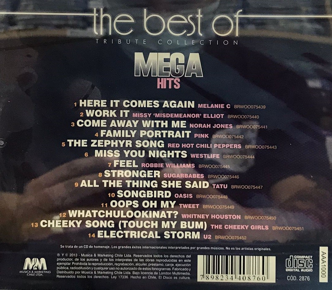 Cantidad de Discos: 1 | Lanzamiento: 2013 | Estilo(s): Alternative Rock | TÃtulo: The best of tribute collection – mega hits | Cantidad de Discos: 1 | Lanzamiento: 2013 | Estilo(s): Alternative Rock | TÃtulo: The best of tribute collection – mega hits