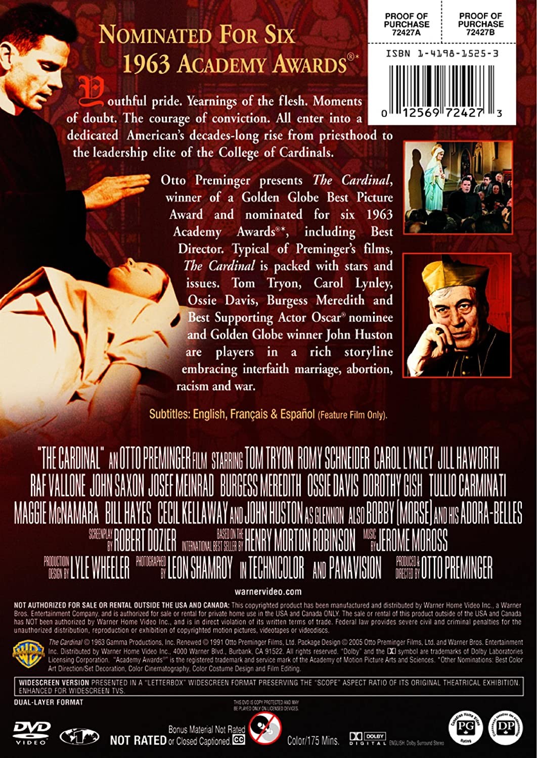 Cantidad de Discos: 1 | Lanzamiento: 1963 | Género(s): Drama | Audio: Inglés, Español, Francés | Subtítulos: Español, Inglés, Francés | Título: The Cardinal | Director(es): Otto Preminger | Reparto: Tom Tryon, John Huston, Romy Schneider, Patrick O’Neal, Carol Lynley, Dorothy Gish, Raf Vallone, Ossie Davis, Pat Henning, Burgess Meredith, Maggie McNamara, Bill Hayes, Cecil Kellaway, Loring Smith, John Saxon, James Hickman, Robert Morse | Norma / Región: NTSC 1 | Cantidad de Discos: 1 | Lanzamiento: 1963 | Género(s): Drama | Audio: Inglés, Español, Francés | Subtítulos: Español, Inglés, Francés | Título: The Cardinal | Director(es): Otto Preminger | Reparto: Tom Tryon, John Huston, Romy Schneider, Patrick O’Neal, Carol Lynley, Dorothy Gish, Raf Vallone, Ossie Davis, Pat Henning, Burgess Meredith, Maggie McNamara, Bill Hayes, Cecil Kellaway, Loring Smith, John Saxon, James Hickman, Robert Morse | Norma / Región: NTSC 1