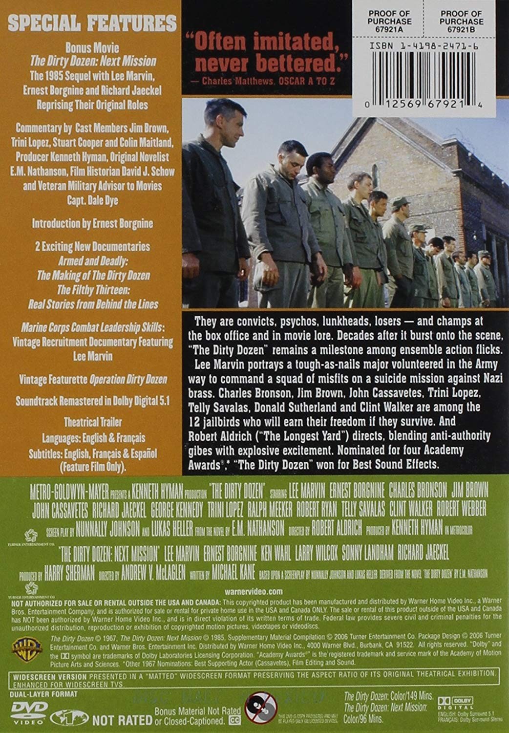 Cantidad de Discos: 2 | Lanzamiento: 2006 | Género(s): Drama, Bélico | Audio: Inglés, Francés | SubtÃtulos: Francés, Español, Inglés | TÃtulo: The Dirty Dozen (1967) | Director(es): Robert Aldrich | Reparto: Lee Marvin, Charles Bronson, John Cassavetes, Ernest Borgnine, George Kennedy, Ralph Meeker, Donald Sutherland, Telly Savalas, Jim Brown, Richard Jaeckel, Trini Lopez, Robert Ryan, Clint Walker, Robert Webber | Sub-CategorÃas: Acción | Norma / Región: NTSC 1 | Cantidad de Discos: 2 | Lanzamiento: 2006 | Género(s): Drama, Bélico | Audio: Inglés, Francés | SubtÃtulos: Francés, Español, Inglés | TÃtulo: The Dirty Dozen (1967) | Director(es): Robert Aldrich | Reparto: Lee Marvin, Charles Bronson, John Cassavetes, Ernest Borgnine, George Kennedy, Ralph Meeker, Donald Sutherland, Telly Savalas, Jim Brown, Richard Jaeckel, Trini Lopez, Robert Ryan, Clint Walker, Robert Webber | Sub-CategorÃas: Acción | Norma / Región: NTSC 1
