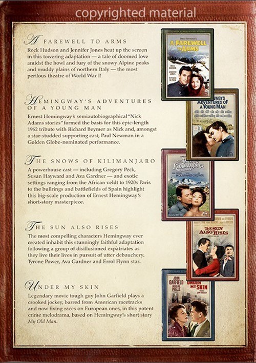 TÃtulo: Adiós a las armas (1957) / Las aventuras de un joven de Hemingway (1962) / Las nieves del Kilimanjaro (1952) / El sol también se eleva (1957) / Bajo mi piel (1950)