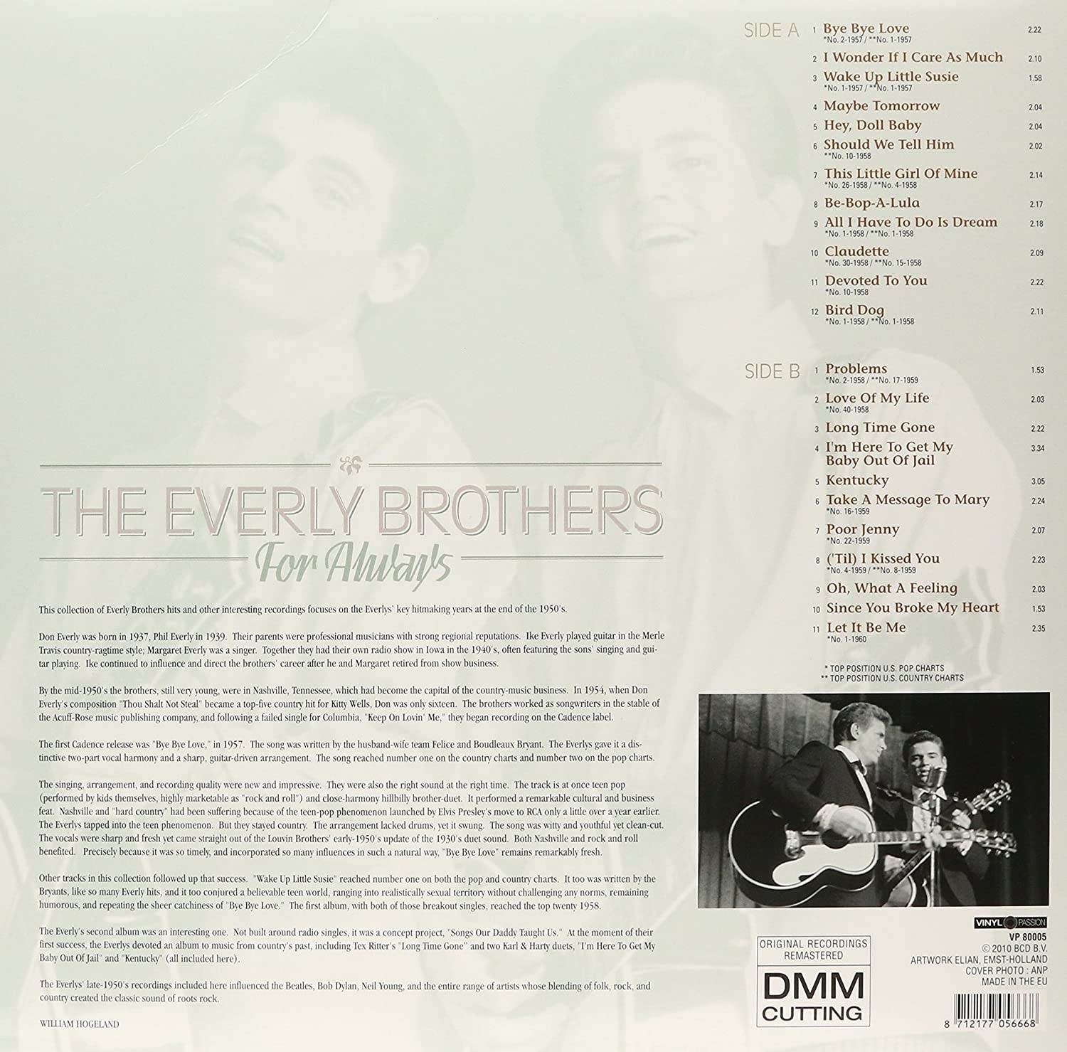 Artista(s) / Grupo: The Everly Brothers | Cantidad de Discos: 1 | Lanzamiento: 2010 | Género(s): Rock, Pop. | Estilo(s): Pop Rock. | TÃtulo: For Always | Artista(s) / Grupo: The Everly Brothers | Cantidad de Discos: 1 | Lanzamiento: 2010 | Género(s): Rock, Pop. | Estilo(s): Pop Rock. | TÃtulo: For Always
