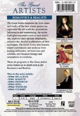 Cantidad de Discos: 6 | Lanzamiento: 2006 | Género(s): Documental | Audio: Inglés (Dolby Digital 2.1) | SubtÃtulos: Sin Subtitulos | TÃtulo: The Great Artists -Romantics & Realists | Director(es): Varios Directores | Sub-CategorÃas: Arte – Pintura | Norma / Región: NTSC 1 | Series: Kultur | Cantidad de Discos: 6 | Lanzamiento: 2006 | Género(s): Documental | Audio: Inglés (Dolby Digital 2.1) | SubtÃtulos: Sin Subtitulos | TÃtulo: The Great Artists -Romantics & Realists | Director(es): Varios Directores | Sub-CategorÃas: Arte – Pintura | Norma / Región: NTSC 1 | Series: Kultur