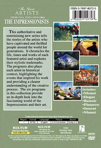 Cantidad de Discos: 6 | Lanzamiento: 1999 | Género(s): Documental | Audio: Inglés (Dolby Digital 2,0 Stereo) | SubtÃtulos: Sin Subtitulos | TÃtulo: The Impressionists Their Lives Times And Works | Director(es): Varios Directores | Sub-CategorÃas: Pintura | Norma / Región: NTSC 1 | Series: Kultur | Cantidad de Discos: 6 | Lanzamiento: 1999 | Género(s): Documental | Audio: Inglés (Dolby Digital 2,0 Stereo) | SubtÃtulos: Sin Subtitulos | TÃtulo: The Impressionists Their Lives Times And Works | Director(es): Varios Directores | Sub-CategorÃas: Pintura | Norma / Región: NTSC 1 | Series: Kultur | Cantidad de Discos: 6 | Lanzamiento: 1999 | Género(s): Documental | Audio: Inglés (Dolby Digital 2,0 Stereo) | SubtÃtulos: Sin Subtitulos | TÃtulo: The Impressionists Their Lives Times And Works | Director(es): Varios Directores | Sub-CategorÃas: Pintura | Norma / Región: NTSC 1 | Series: Kultur