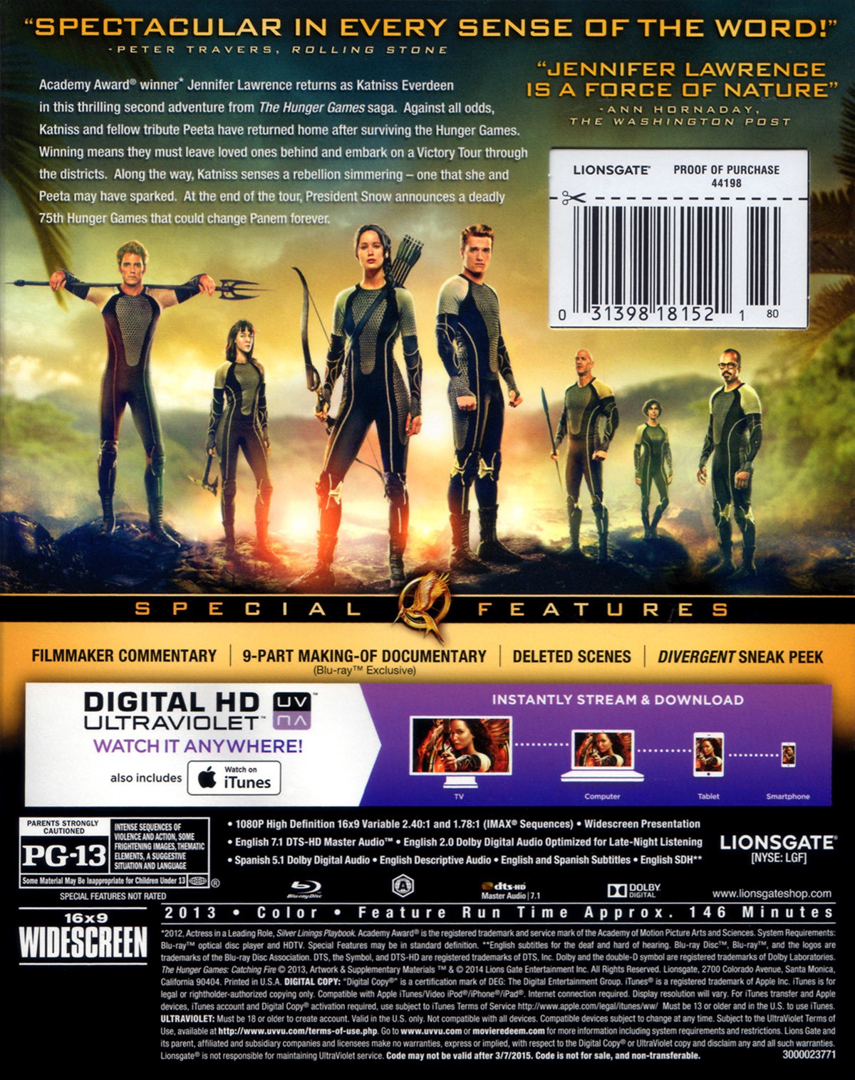 Reparto: Jennifer Lawrence, Josh Hutcherson, Liam Hemsworth, Philip Seymour Hoffman, Stanley Tucci, Woody Harrelson, Elizabeth Banks, Toby Jones, Donald Sutherland, Jeffrey Wright, Amanda Plummer, Lenny Kravitz, Jena Malone, Jack Quaid, Taylor St. Clair, Sam Claflin, Alan Ritchson, Paula Malcomson, Sandra Ellis Lafferty, Willow Shields, Nelson Ascencio, Raiden Integra