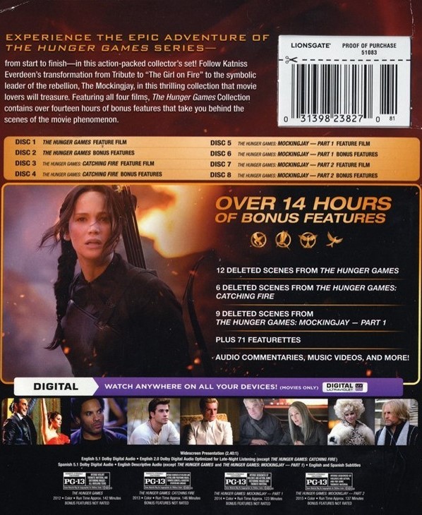 Título: The Hunger Games: Complete 4-Film Collection – Los juegos del hambre (2012) / En llamas (2013) / Sinsajo – Parte 1 (2014) / Sinsajo – El final (2015)