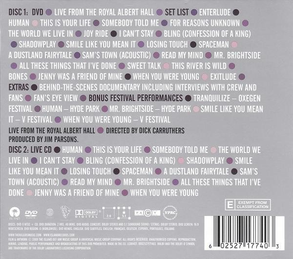 Artista(s) / Grupo: The Killers | Cantidad de Discos: 1 DVD + 1 CD | Lanzamiento: 2009 | Género(s): Rock, Pop | Estilo(s): Alternative Rock, Acoustic, Soft Rock, Pop Rock | TÃtulo: Live From The Royal Albert Hall | Artista(s) / Grupo: The Killers | Cantidad de Discos: 1 DVD + 1 CD | Lanzamiento: 2009 | Género(s): Rock, Pop | Estilo(s): Alternative Rock, Acoustic, Soft Rock, Pop Rock | TÃtulo: Live From The Royal Albert Hall