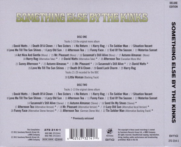 Artista(s) / Grupo: The Kinks | Cantidad de Discos: 2 | Lanzamiento: 2015 | Género(s): Rock, Pop, Folk, World, & Country | Estilo(s): Pop Rock | Título: Something Else By The Kinks | Artista(s) / Grupo: The Kinks | Cantidad de Discos: 2 | Lanzamiento: 2015 | Género(s): Rock, Pop, Folk, World, & Country | Estilo(s): Pop Rock | Título: Something Else By The Kinks