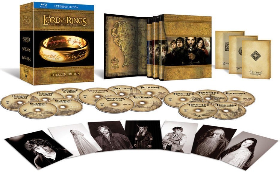 Cantidad de Discos: 6 + 9 DVD | Lanzamiento: 2012 | Género(s): Acción, Aventura, FantasÃa | Audio: Inglés | SubtÃtulos: Español, Inglés | TÃtulo: Lord Of The Rings: The Motion Picture Trilogy [extended Edition] | Director(es): Peter Jackson | Reparto: Elijah Wood, Ian McKellen, Viggo Mortensen, Sean Astin, Sean Bean, John Rhys-Davies, Orlando Bloom, Dominic Monaghan, Billy Boyd, Cate Blanchett, Hugo Weaving, Liv Tyler, Ian Holm, Christopher Lee, Lawrence Makoare, Craig Parker, Andy Serkis, Marton Csokas / Elijah Wood, Viggo Mortensen, Ian McKellen, Sean Astin, Andy Serkis, John Rhys-Davies, Orlando Bloom, Bernard Hill, Miranda Otto, David Wenham, Dominic Monaghan, Billy Boyd, Christopher Lee, Liv Tyler, Karl Urban, Brad Dourif, Hugo Weaving, Cate Blanchett, Craig Parker, John Leigh, Sean Bean, John Noble / Elijah Wood, Viggo Mortensen, Ian McKellen, Sean Astin, Andy Serkis, John Rhys-Davies, Orlando Bloom, John Noble, Miranda Otto, David Wenham, Bernard Hill, Billy Boyd, Dominic Monaghan, Liv Tyler, K