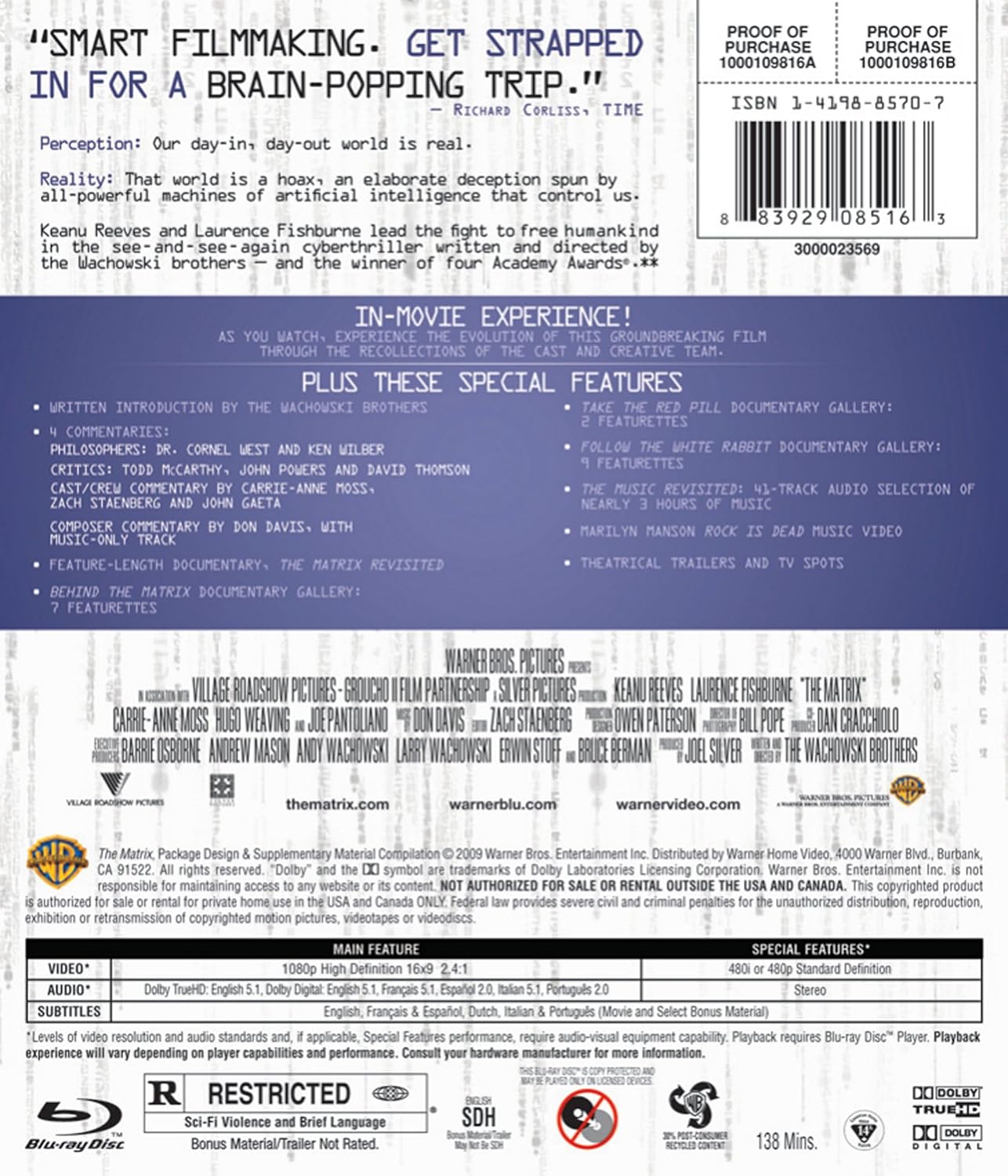 Reparto: Keanu Reeves, Laurence Fishburne, Carrie-Anne Moss, Joe Pantoliano, Hugo Weaving, Marcus Chong, Gloria Foster, Matt Doran, Belinda McClory, Julian Arahanga, Anthony Ray Parker, Paul Goddard, Robert Taylor, Marc Aden Gray //