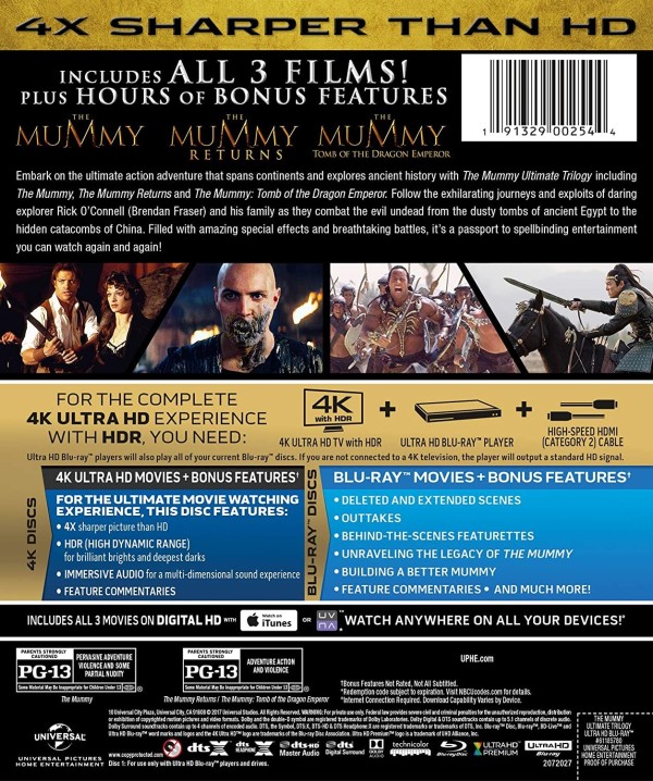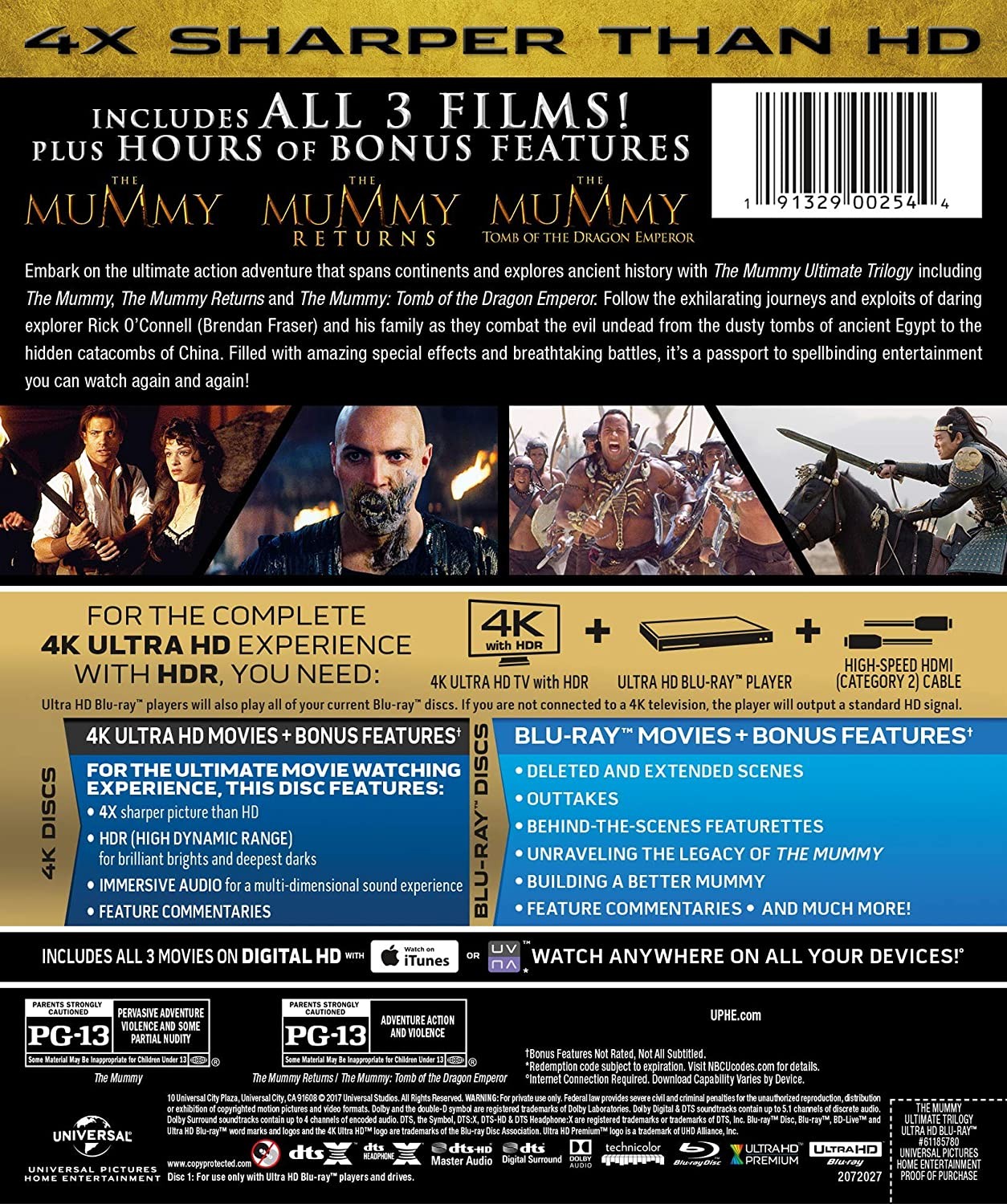 Reparto: Brendan Fraser, Maria Bello, Luke Ford, Jet Li, Michelle Yeoh, John Hannah, Liam Cunningham, Russell Wong, Isabella Leong, Anthony Wong, Albert Kwan, Liang Tian / Brendan Fraser, Maria Bello, Luke Ford, Jet Li, Michelle Yeoh, John Hannah, Liam Cunningham, Russell Wong, Isabella Leong, Anthony Wong, Albert Kwan, Liang Tian / Brendan Fraser, Rachel Weisz, John Hannah, Arnold Vosloo, Jonathan Hyde, Oded Fehr, Kevin J. O’Connor, Stephen Dunham, Aharon Ipalé, Tuc Watkins, Omid Djalili, Erick Avari, Carl Chase, Corey Johnson, Bernard Fox, Patricia Velasquez, Ray Donn