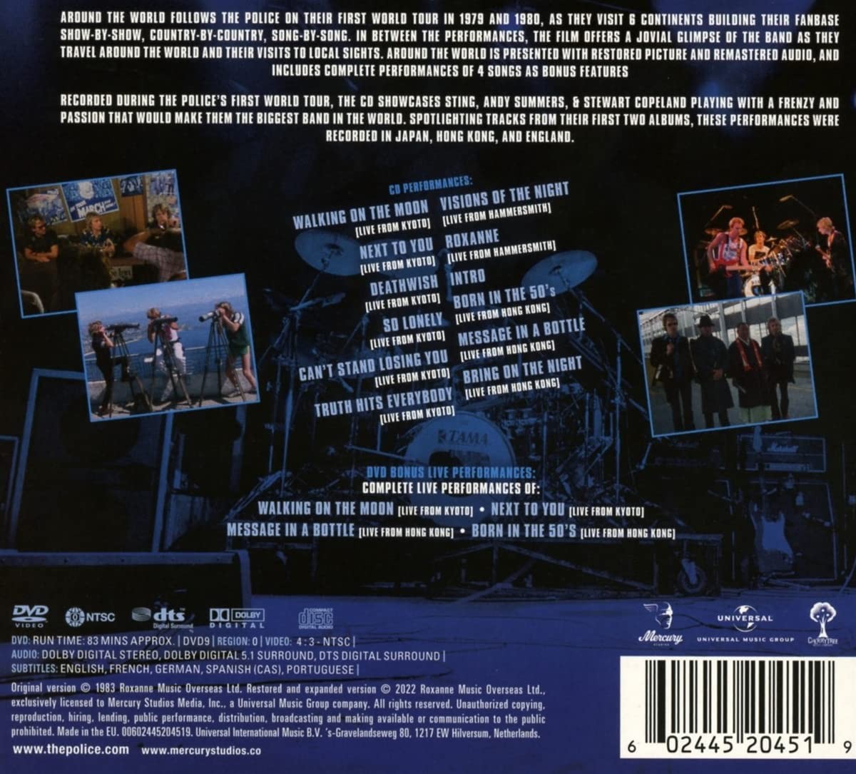 Artista(s) / Grupo: The Police | Cantidad de Discos: 1 DVD + 1 CD | Lanzamiento: 2022 | Género(s): Rock Pop | TÃtulo: Around The World (Restored & Expanded) | Norma / Región: Multizona | Artista(s) / Grupo: The Police | Cantidad de Discos: 1 DVD + 1 CD | Lanzamiento: 2022 | Género(s): Rock Pop | TÃtulo: Around The World (Restored & Expanded) | Norma / Región: Multizona
