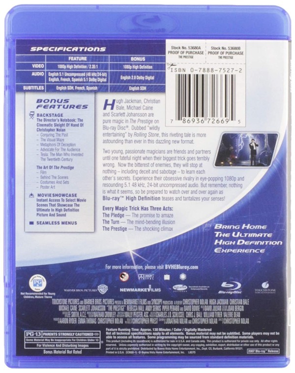 Reparto: Hugh Jackman, Christian Bale, Michael Caine, Scarlett Johansson, David Bowie, Piper Perabo, Andy Serkis, Rebecca Hall, Ricky Jay, Ron Perkins, Samantha Mahurin, Daniel Davis, Jim Piddock, Christopher Neame, Mark Ryan, Roger Rees, Jamie Harris