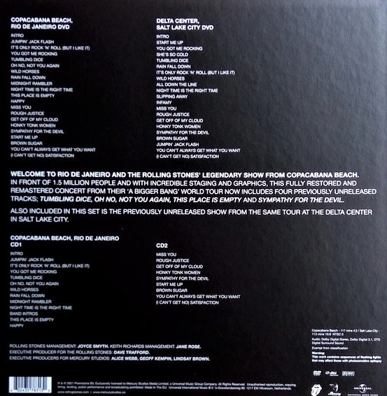 Artista(s) / Grupo: The Rolling Stones | Cantidad de Discos: 2 DVD + 2 CD | Lanzamiento: 2021 | Género(s): Rock | Estilo(s): Rock & Roll, Classick Rock | TÃtulo: A Bigger Bang – Live On Copacabana Beach Deluxe (+Salt Lake City) | Artista(s) / Grupo: The Rolling Stones | Cantidad de Discos: 2 DVD + 2 CD | Lanzamiento: 2021 | Género(s): Rock | Estilo(s): Rock & Roll, Classick Rock | TÃtulo: A Bigger Bang – Live On Copacabana Beach Deluxe (+Salt Lake City) | Artista(s) / Grupo: The Rolling Stones | Cantidad de Discos: 2 DVD + 2 CD | Lanzamiento: 2021 | Género(s): Rock | Estilo(s): Rock & Roll, Classick Rock | TÃtulo: A Bigger Bang – Live On Copacabana Beach Deluxe (+Salt Lake City)