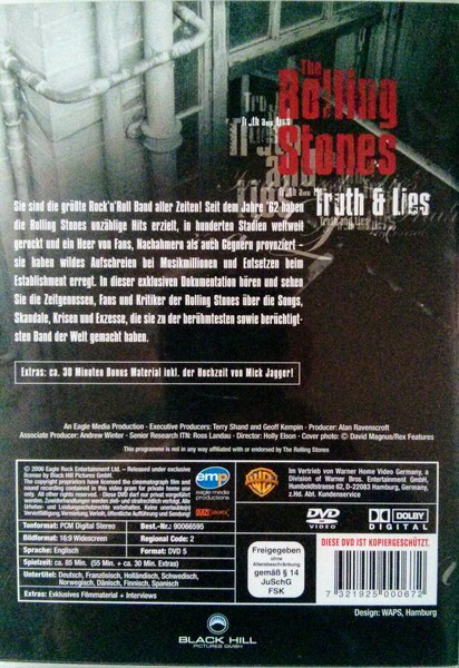 Artista(s) / Grupo: The Rolling Stones | Cantidad de Discos: 1 | Lanzamiento: 2006 | Género(s): Stage & Screen | Audio: Inglés | SubtÃtulos: Español | TÃtulo: Truth & Lies | Norma / Región: PAL (Región 2) | Artista(s) / Grupo: The Rolling Stones | Cantidad de Discos: 1 | Lanzamiento: 2006 | Género(s): Stage & Screen | Audio: Inglés | SubtÃtulos: Español | TÃtulo: Truth & Lies | Norma / Región: PAL (Región 2) | Artista(s) / Grupo: The Rolling Stones | Cantidad de Discos: 1 | Lanzamiento: 2006 | Género(s): Stage & Screen | Audio: Inglés | SubtÃtulos: Español | TÃtulo: Truth & Lies | Norma / Región: PAL (Región 2)