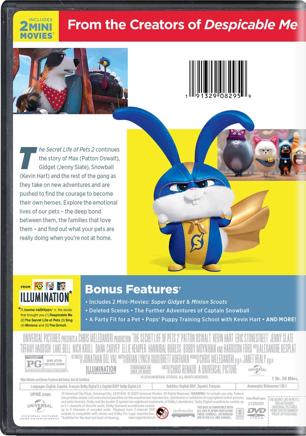 Cantidad de Discos: 1 | Lanzamiento: 2019 | Género(s): Animación, Comedia | Audio: Inglés (Dolby Digital 5,1), Español (Dolby Digital 5,1), Francés (Dolby Digital 5,1) | Subtítulos: Inglés SDH, Español, Francés | Título: La vida secreta de tus mascotas 2 | Director(es): Chris Renaud | Reparto: Louis C.K, Patton Oswalt, Eric Stonestreet, Kevin Hart, Jenny Slate, Ellie Kemper, Lake Bell, Dana Carvey, Hannibal Buress, Bobby Moynihan, Tiffany Haddish, Nick Kroll, Harrison Ford, Pete Holmes | Norma / Región: NTSC (Región 1) | Cantidad de Discos: 1 | Lanzamiento: 2019 | Género(s): Animación, Comedia | Audio: Inglés (Dolby Digital 5,1), Español (Dolby Digital 5,1), Francés (Dolby Digital 5,1) | Subtítulos: Inglés SDH, Español, Francés | Título: La vida secreta de tus mascotas 2 | Director(es): Chris Renaud | Reparto: Louis C.K, Patton Oswalt, Eric Stonestreet, Kevin Hart, Jenny Slate, Ellie Kemper, Lake Bell, Dana Carvey, Hannibal Buress, Bobby Moynihan, Tiffany Haddish, Nick Kroll, Har