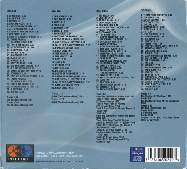 Artista(s) / Grupo: The Shadows | Cantidad de Discos: 4 | Género(s): Rock Pop | Estilo(s): Instrumental, Vocal, Rock & Roll | Título: Two Classic Albums Plus Bonus EP’s & Singles | Artista(s) / Grupo: The Shadows | Cantidad de Discos: 4 | Género(s): Rock Pop | Estilo(s): Instrumental, Vocal, Rock & Roll | Título: Two Classic Albums Plus Bonus EP’s & Singles