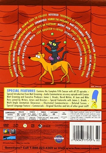 Cantidad de Discos: 4 | Lanzamiento: 2011 | Género(s): Animación | Audio: Inglés, Español, Francés | SubtÃtulos: Inglés, Español | TÃtulo: The Simpsons – 5 Seaon | Director(es): Rich Moore, Susie Dietter | Reparto: Kelsey Grammer, Yeardley Smith, George Harrison, Julie Kavner, Dan Castellaneta | Norma / Región: NTSC 1 | Cantidad de Discos: 4 | Lanzamiento: 2011 | Género(s): Animación | Audio: Inglés, Español, Francés | SubtÃtulos: Inglés, Español | TÃtulo: The Simpsons – 5 Seaon | Director(es): Rich Moore, Susie Dietter | Reparto: Kelsey Grammer, Yeardley Smith, George Harrison, Julie Kavner, Dan Castellaneta | Norma / Región: NTSC 1