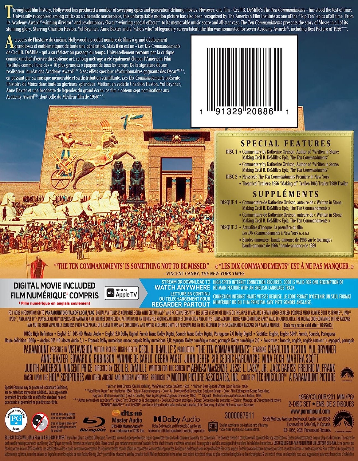 Reparto: Charlton Heston, Yul Brynner, Anne Baxter, Edward G. Robinson, Yvonne De Carlo, Debra Paget, John Derek, Cedric Hardwicke, Nina Foch, Martha Scott, Julia Faye, Judith Anderson, Vincent Price, John Carradine, Douglass Dumbrille, Ian Keith, Olive Deering, Eduard Franz, Woody Strode, Frank DeKova, Keith Richards