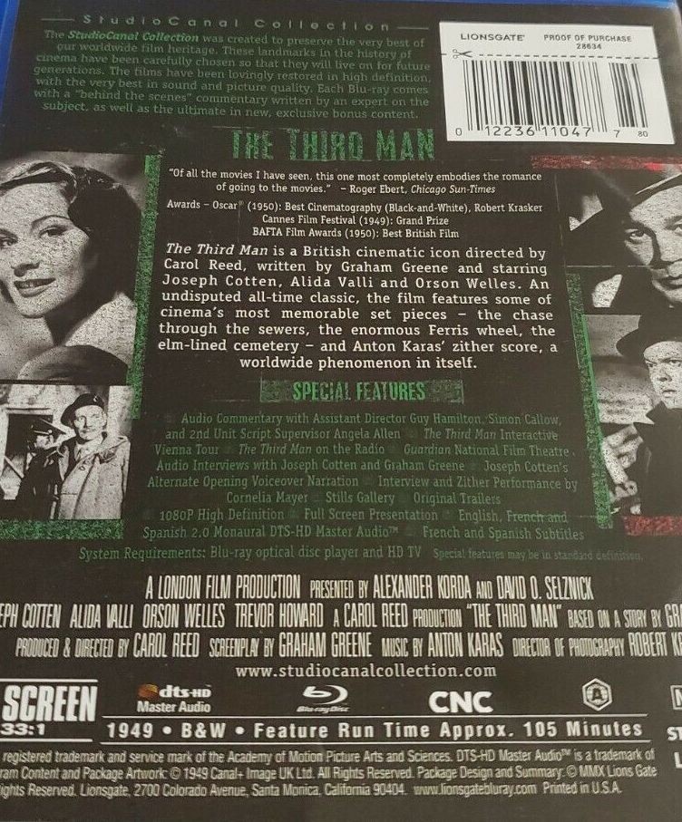 Lanzamiento: 2015 | Género(s): Cine negro. Intriga. Drama | Audio: Inglés (Dolby Digital 2,0), Español (Dolby Digital 2,0), Español (Dolby Digital 2,0) | SubtÃtulos: Español, Inglés, Francés | TÃtulo: El tercer hombre (1949) | Director(es): Carol Reed | Reparto: Joseph Cotten, Alida Valli, Trevor Howard, Orson Welles, Bernard Lee, Paul Hörbiger, Ernst Deutsch, Siegfried Breuer, Erich Ponto, Wilfrid Hyde-White, Hedwig Bleibtreu | Norma / Región: NTSC (Región A) | Lanzamiento: 2015 | Género(s): Cine negro. Intriga. Drama | Audio: Inglés (Dolby Digital 2,0), Español (Dolby Digital 2,0), Español (Dolby Digital 2,0) | SubtÃtulos: Español, Inglés, Francés | TÃtulo: El tercer hombre (1949) | Director(es): Carol Reed | Reparto: Joseph Cotten, Alida Valli, Trevor Howard, Orson Welles, Bernard Lee, Paul Hörbiger, Ernst Deutsch, Siegfried Breuer, Erich Ponto, Wilfrid Hyde-White, Hedwig Bleibtreu | Norma / Región: NTSC (Región A)