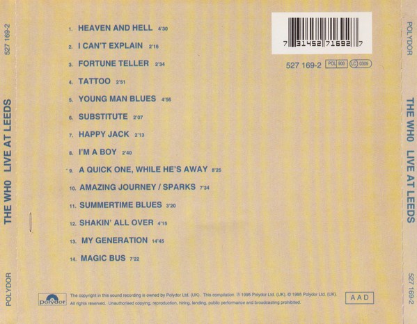 Artista(s) / Grupo: The Who | Cantidad de Discos: 1 | Lanzamiento: 2016 | Género(s): Rock | Estilo(s): Hard Rock, Heavy Metal | TÃtulo: Live At Leeds | Artista(s) / Grupo: The Who | Cantidad de Discos: 1 | Lanzamiento: 2016 | Género(s): Rock | Estilo(s): Hard Rock, Heavy Metal | TÃtulo: Live At Leeds | Artista(s) / Grupo: The Who | Cantidad de Discos: 1 | Lanzamiento: 2016 | Género(s): Rock | Estilo(s): Hard Rock, Heavy Metal | TÃtulo: Live At Leeds