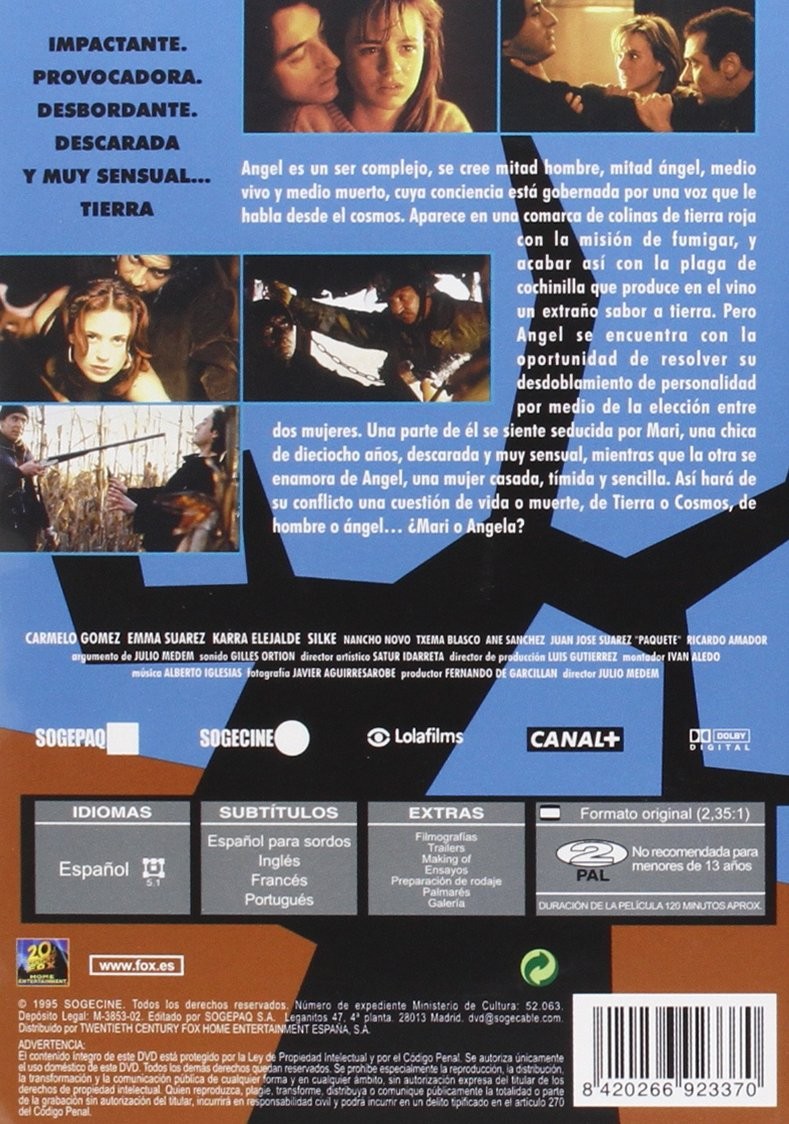 Cantidad de Discos: 1 | Lanzamiento: 2002 | Género(s): Drama | Audio: Español | Subtítulos: Inglés, Español, Francés, Portugués | Título: Tierra | Director(es): Julio Medem | Reparto: Carmelo Gómez, Emma Suárez, Karra Elejalde, Ana Sánchez, Nancho Novo, Silke Hornillos Klein, Txema Blasco, Juan José Suárez | Norma / Región: PAL (Región 2) | Cantidad de Discos: 1 | Lanzamiento: 2002 | Género(s): Drama | Audio: Español | Subtítulos: Inglés, Español, Francés, Portugués | Título: Tierra | Director(es): Julio Medem | Reparto: Carmelo Gómez, Emma Suárez, Karra Elejalde, Ana Sánchez, Nancho Novo, Silke Hornillos Klein, Txema Blasco, Juan José Suárez | Norma / Región: PAL (Región 2)