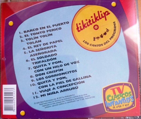 Artista(s) / Grupo: Tikitiklip | Cantidad de Discos: 1 | Lanzamiento: 2007 | Género(s): Infantil | Estilo(s): Children’s, Folk, World, & Country | TÃtulo: TV Clasicos Infantiles De Ayer Y Hoy | Artista(s) / Grupo: Tikitiklip | Cantidad de Discos: 1 | Lanzamiento: 2007 | Género(s): Infantil | Estilo(s): Children’s, Folk, World, & Country | TÃtulo: TV Clasicos Infantiles De Ayer Y Hoy | Artista(s) / Grupo: Tikitiklip | Cantidad de Discos: 1 | Lanzamiento: 2007 | Género(s): Infantil | Estilo(s): Children’s, Folk, World, & Country | TÃtulo: TV Clasicos Infantiles De Ayer Y Hoy