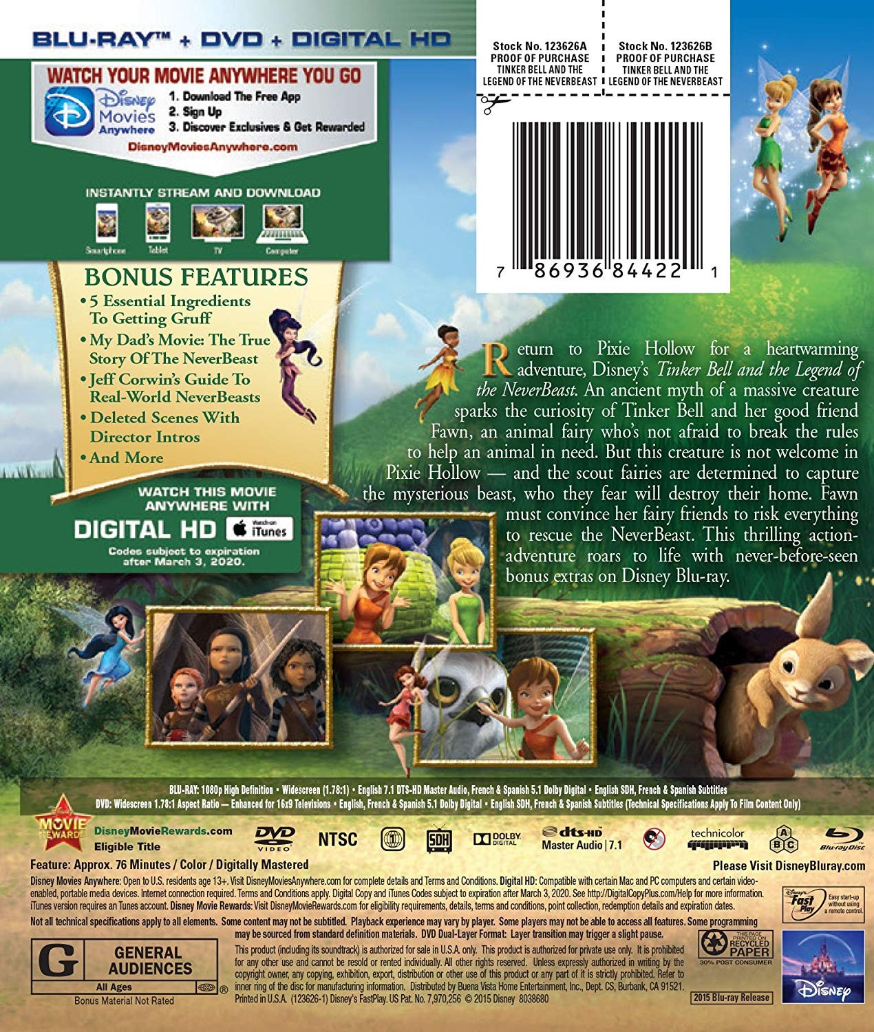 Cantidad de Discos: BLR + DVD | Lanzamiento: 2014 | Género(s): Animación | Audio: Español, Inglés, Francés | Subtítulos: Francés, Español, Inglés | Título: Tinkerbell y la bestia de Nunca Jamás | Director(es): Steve Loter | Reparto: Chloe Bennet, Ginnifer Goodwin, Olivia Holt | Sub-Categorías: Animación | Norma / Región: NTSC (Región 1, 4) | Cantidad de Discos: BLR + DVD | Lanzamiento: 2014 | Género(s): Animación | Audio: Español, Inglés, Francés | Subtítulos: Francés, Español, Inglés | Título: Tinkerbell y la bestia de Nunca Jamás | Director(es): Steve Loter | Reparto: Chloe Bennet, Ginnifer Goodwin, Olivia Holt | Sub-Categorías: Animación | Norma / Región: NTSC (Región 1, 4)