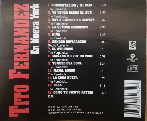 Artista(s) / Grupo: Tito Fernandez | Cantidad de Discos: 1 | Lanzamiento: 1998 | Género(s): Folk | Estilo(s): Latin | TÃtulo: En Nueva York | Artista(s) / Grupo: Tito Fernandez | Cantidad de Discos: 1 | Lanzamiento: 1998 | Género(s): Folk | Estilo(s): Latin | TÃtulo: En Nueva York