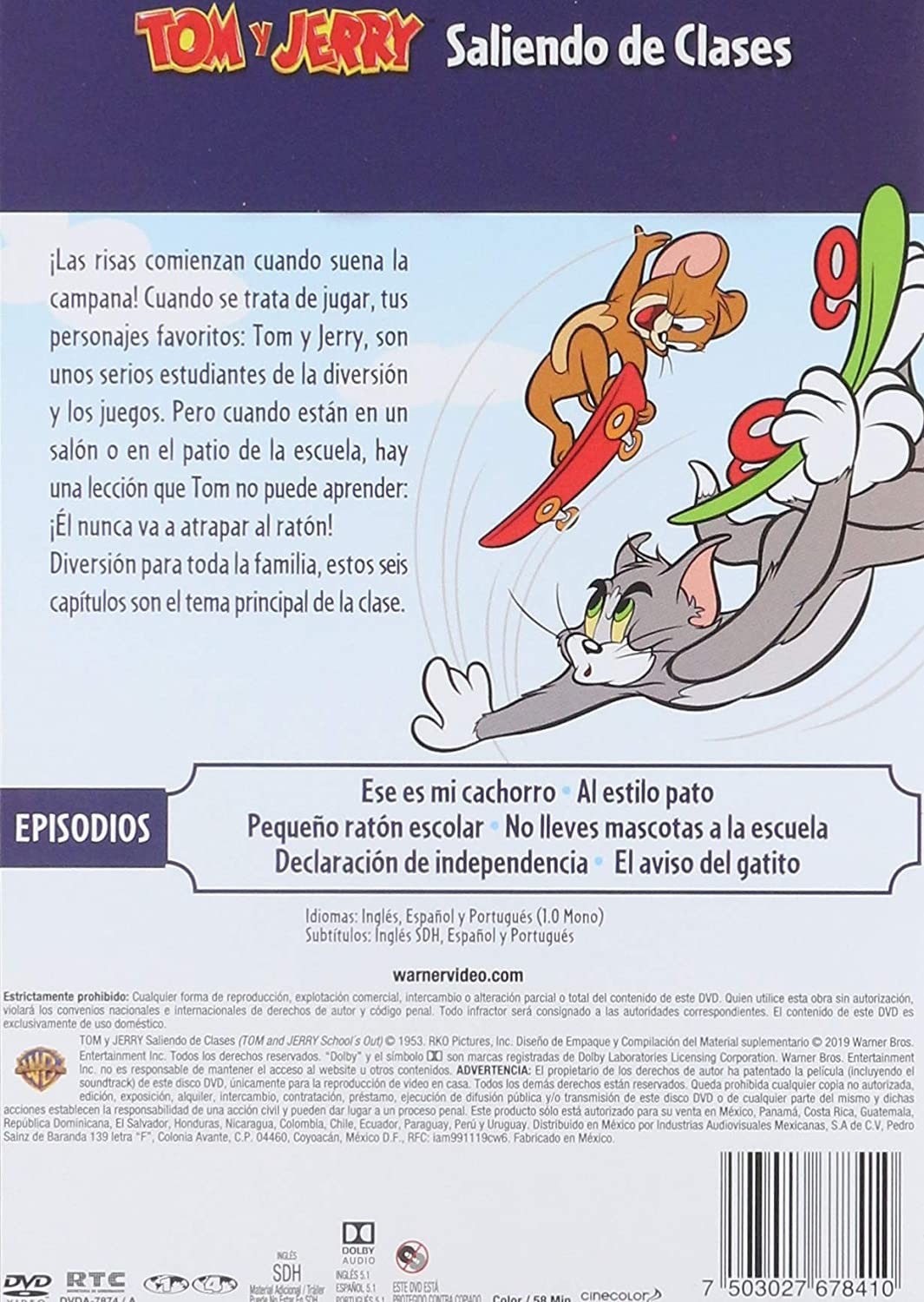 Cantidad de Discos: 1 | Lanzamiento: 2019 | Género(s): Animación. Comedia. Infantil | Audio: Español (Dolby Digital 5,1) | Subtítulos: Español | Título: Tom and Jerry Leaving Class | Director(es): Bill Kopp | Reparto: Animación | Norma / Región: NTSC (Región 1, 4) | Series: Hanna Barbera | Cantidad de Discos: 1 | Lanzamiento: 2019 | Género(s): Animación. Comedia. Infantil | Audio: Español (Dolby Digital 5,1) | Subtítulos: Español | Título: Tom and Jerry Leaving Class | Director(es): Bill Kopp | Reparto: Animación | Norma / Región: NTSC (Región 1, 4) | Series: Hanna Barbera
