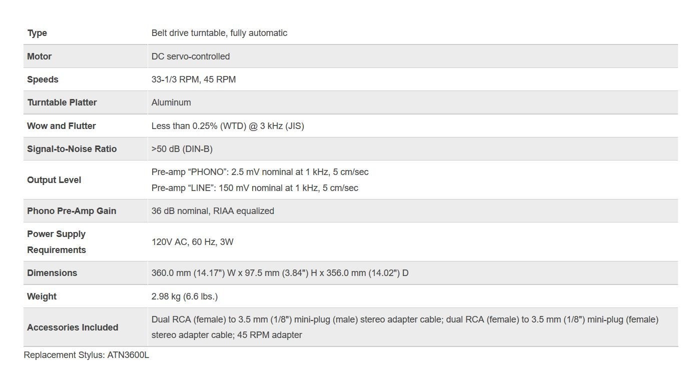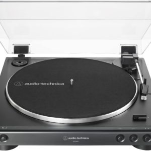 Tornamesa AT-LP60 estéreo Redescubre tus vinilos clásicos de 33 1/3 y 45 RPM en este tocadiscos totalmente automático. Con su preamplificador integrado conmutable, puedes conectar el AT-LP60 directamente a tu computadora, sistema de estéreo, parlantes y otros componentes que no tienen ninguna entrada específica para tocadiscos. El tocadiscos incluye un cartucho de audio Audio-Technica Dual Magnet™ con una púa reemplazable.