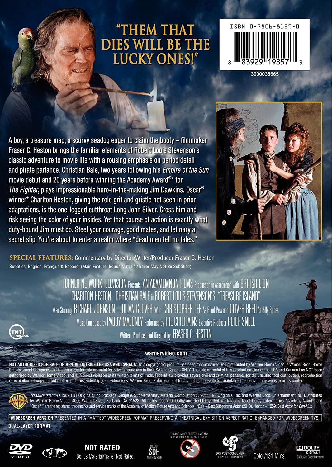 Cantidad de Discos: 1 | Lanzamiento: 1990 | Género(s): Aventuras. | Audio: Español, Inglés, Francés | SubtÃtulos: Español, Inglés, Francés | TÃtulo: Treasure Island | Director(es): Fraser Clarke Heston. | Reparto: Charlton Heston, Christian Bale, Oliver Reed, Christopher Lee, Richard Johnson, Julian Glover, Isla Blair, James Cosmo, Clive Wood, Nicolas Amer, Richard Beale, Michael Halsey, Bill Sloan, John Benfield, Pete Postlethwaite, Michael Thomas. | Norma / Región: NTSC (Región A) | Cantidad de Discos: 1 | Lanzamiento: 1990 | Género(s): Aventuras. | Audio: Español, Inglés, Francés | SubtÃtulos: Español, Inglés, Francés | TÃtulo: Treasure Island | Director(es): Fraser Clarke Heston. | Reparto: Charlton Heston, Christian Bale, Oliver Reed, Christopher Lee, Richard Johnson, Julian Glover, Isla Blair, James Cosmo, Clive Wood, Nicolas Amer, Richard Beale, Michael Halsey, Bill Sloan, John Benfield, Pete Postlethwaite, Michael Thomas. | Norma / Región: NTSC (Región A)