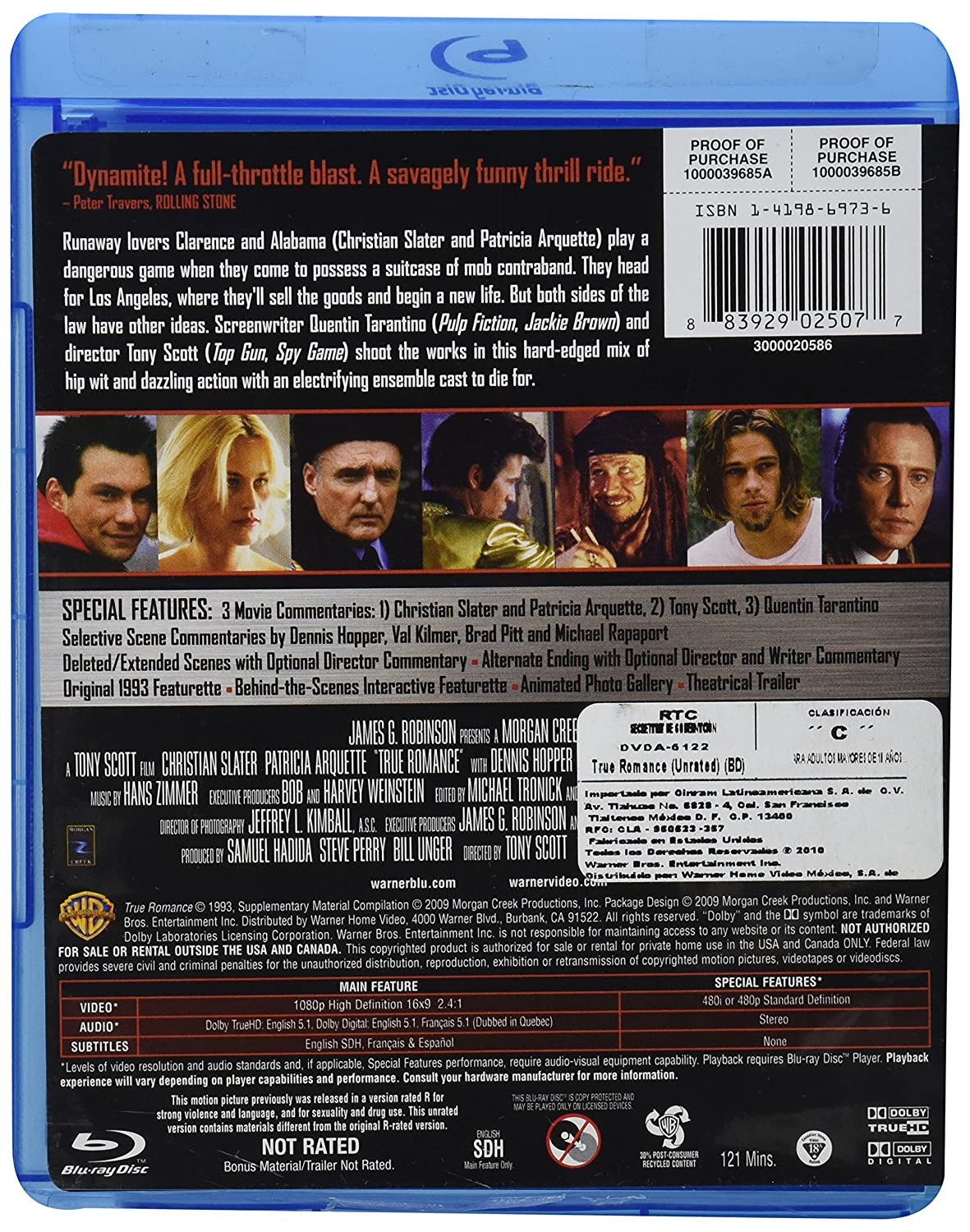 Cantidad de Discos: 1 | Lanzamiento: 1993 | Género(s): Thriller | Audio: Inglés, Francés, Español | SubtÃtulos: Español, Inglés, Francés | TÃtulo: True Romance | Director(es): Tony Scott | Reparto: Christian Slater, Patricia Arquette, Dennis Hopper, Christopher Walken, Gary Oldman, James Gandolfini, Brad Pitt, Val Kilmer, Michael Rapaport, Bronson Pinchot, Saul Rubinek, Samuel L. Jackson, Chris Penn, Tom Sizemore, Anna Thomson, Eric Allan Kramer | Norma / Región: NTSC (Región A) | Cantidad de Discos: 1 | Lanzamiento: 1993 | Género(s): Thriller | Audio: Inglés, Francés, Español | SubtÃtulos: Español, Inglés, Francés | TÃtulo: True Romance | Director(es): Tony Scott | Reparto: Christian Slater, Patricia Arquette, Dennis Hopper, Christopher Walken, Gary Oldman, James Gandolfini, Brad Pitt, Val Kilmer, Michael Rapaport, Bronson Pinchot, Saul Rubinek, Samuel L. Jackson, Chris Penn, Tom Sizemore, Anna Thomson, Eric Allan Kramer | Norma / Región: NTSC (Región A)